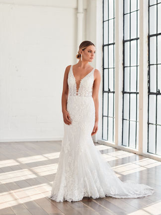 Discover our fit-and-flare wedding dresses which are designed to hug the body closely, accentuating your curves before gracefully flaring out below the hips.